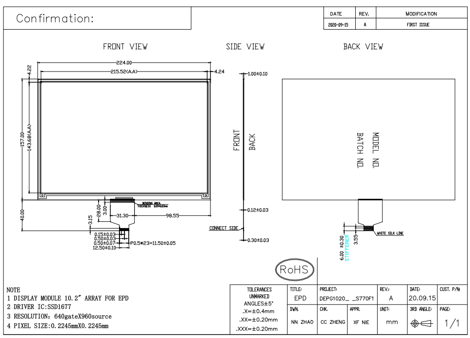 DKE 10.2 inch 4色タイプ(E5) BWRY E-paper display